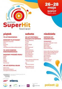 Polsat SuperHit Festiwal to festiwal Telewizji Polsat, podczas którego widzowie usłyszą najlepsze i najpopularniejsze przeboje polskiej muzyki oraz zobaczą swoich ulubionych wykonawców.